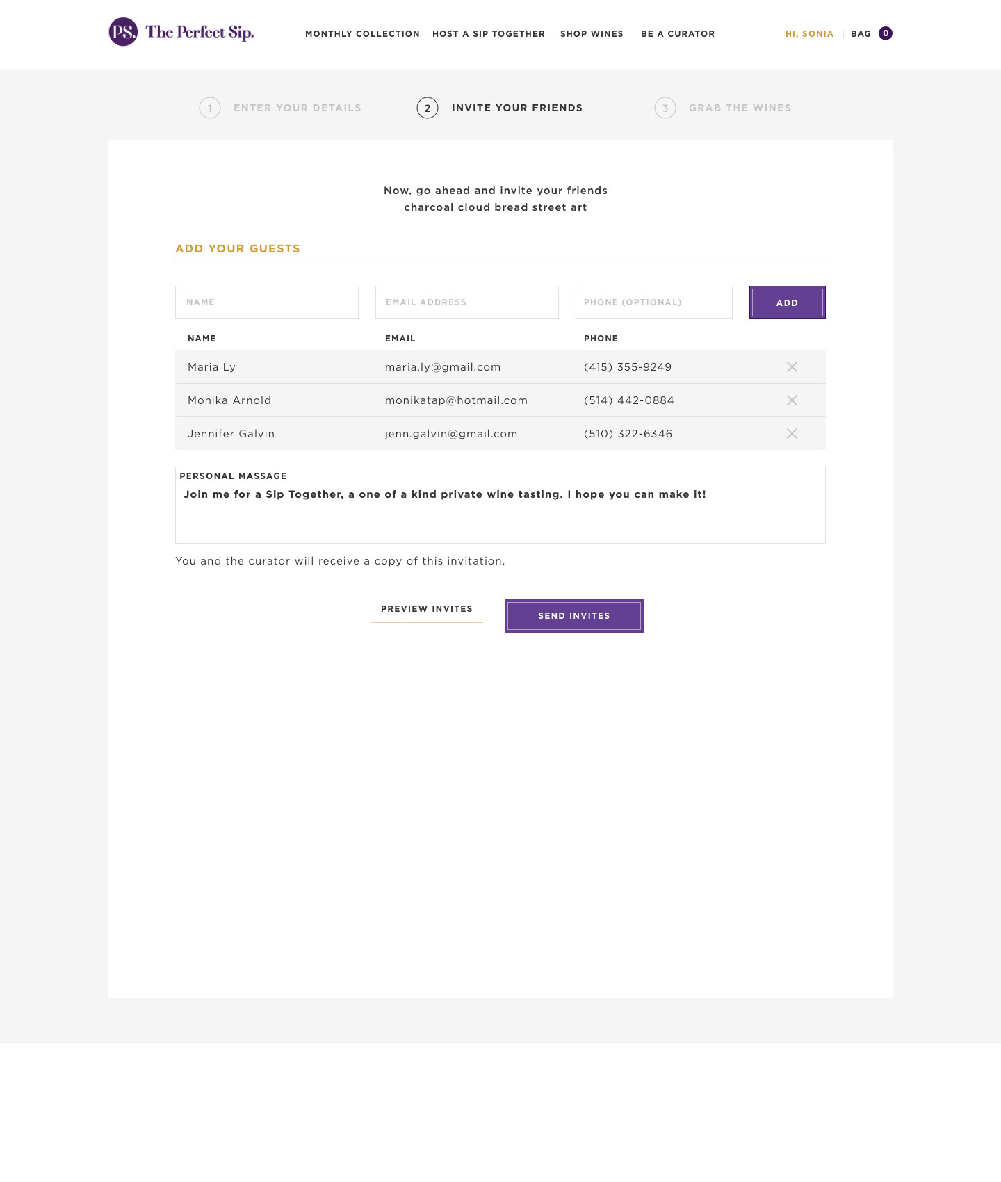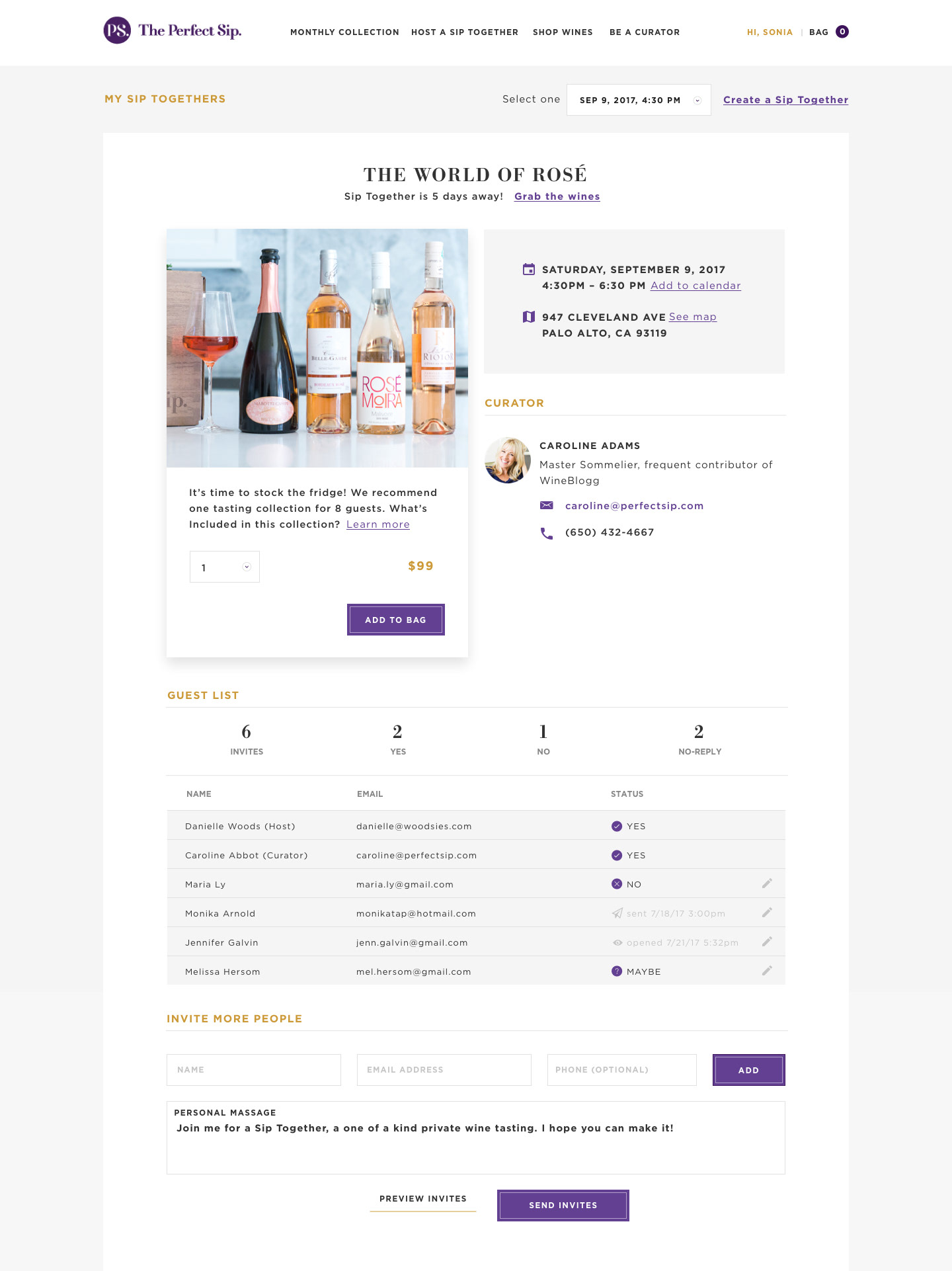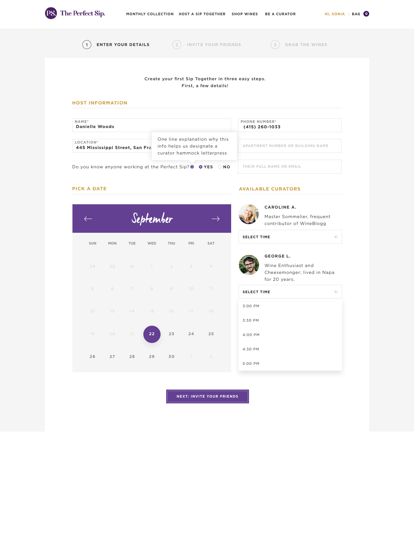 Perfect Sip came to me to redesign their host a sip together flow and to elevate the experience for the user.