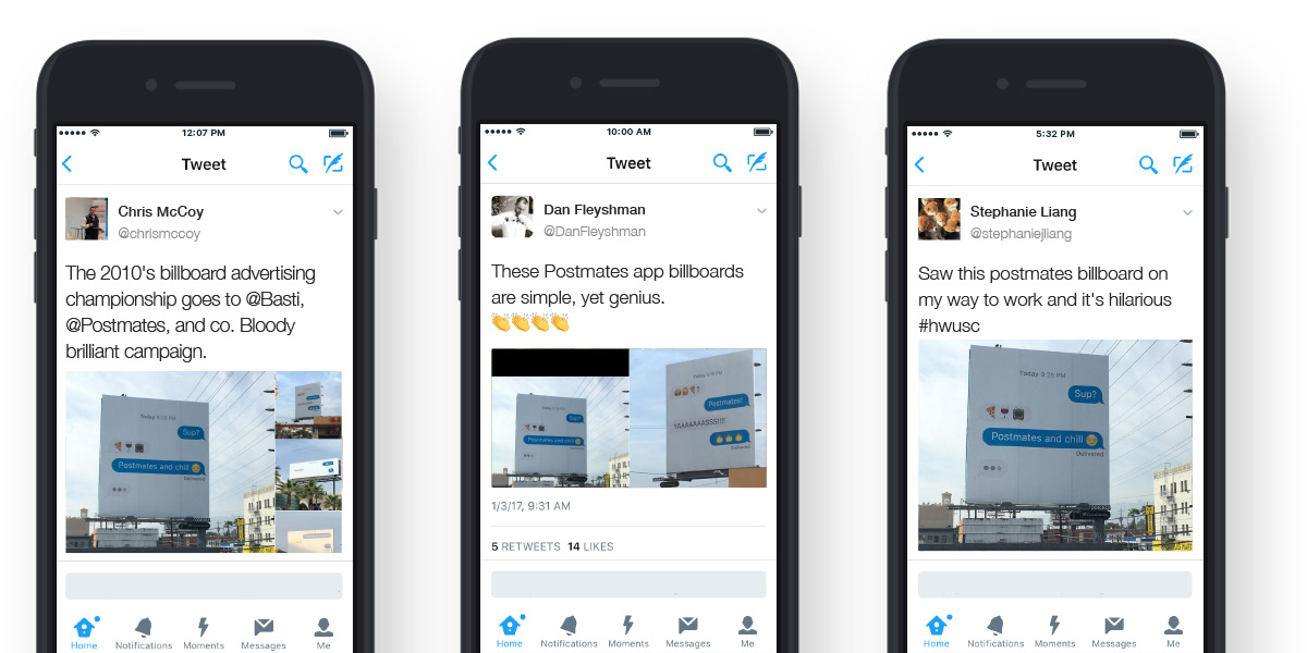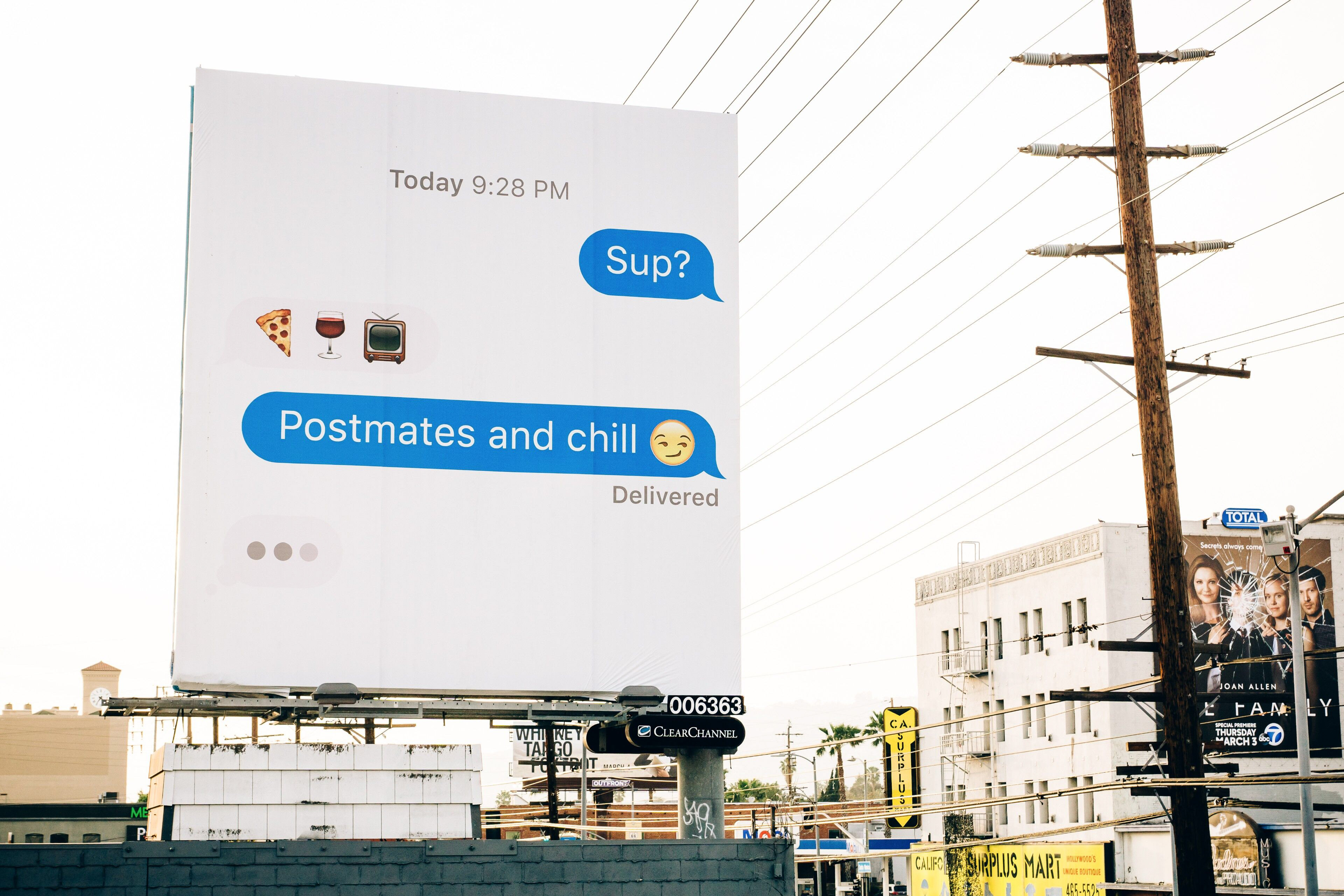 On a growth hack week at Postmates, we put together a quick social market experiment using a fun emoji-themed text ad campaign. The visuals and succinct copy explains the service. No logo, no tag lines.