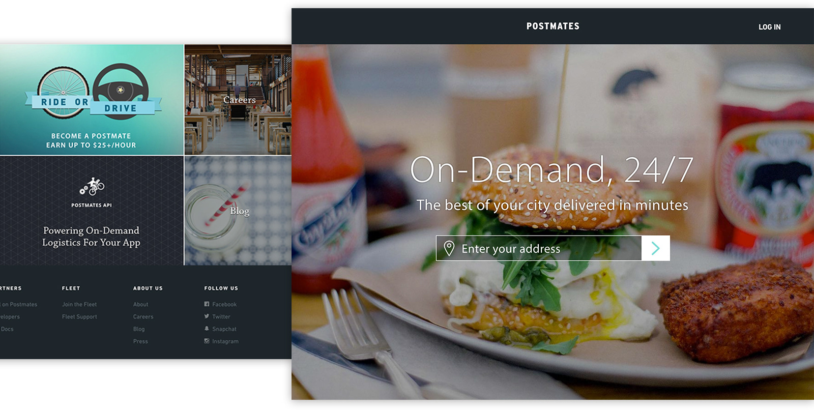 After claiming five million deliveries, Postmates was looking to update their web site to reflect a fresh creative direction, while providing an overview about its services as well as directing users that they can get deliveries via their browsers.